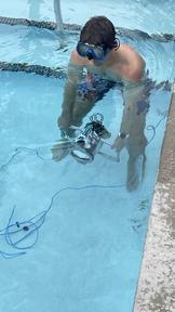 To calibrate and test the camera’s performance underwater, we have performed weekly pool tests for data collection. Students Theo Darci-Maher and Nykolas Rekasius took the camera along with the old FishSense enclosure into a pool and collected data for camera calibration. Students Annabelle Chen and Sijan Shrestha worked on the pool deck with their PhD mentor, Chris Crutchfield, to provide support and debug with the camera and the TX2.